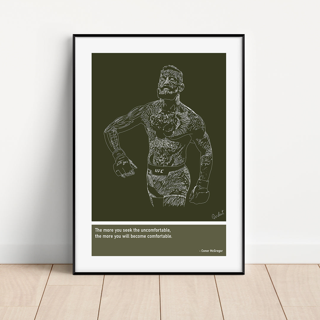 Exclusive sketch art prints of martial art legends including Mike Tyson, Bruce Lee, Conor...